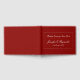 This elegant wedding or marriage guest book features the message "Wedding Ceremony Guest Book", the customized names of the married couple and the wedding date. The background is coloured red. It could be used to record well wishes for the newly married couple.