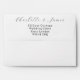 The bride and grooms names and return address are show in elegant script on these minimalist wedding invitation envelopes. To edit the text click on the personalize button.