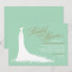 Élégante invitation à la douche nuptiale pour les futurs mariés élégants dispose d'une police de script de calligraphie ornée et de robe mariage fluide. Les détails des fleurs, des fleurs et des papillons font ressortir la robe éthérée. Blanc, vert menthe et dorures anciennes.