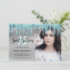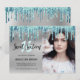 This modern invitation design features faux mint dripping glitter, silver metallic texture and elegant calligraphy font. Add your favourite photo.
