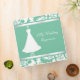 Avery three ring Binder with pretty graphics of a mint green and white damask design on top and bottom edged with a white satin looking ribbon. In the middle of this pretty binder is a lovely wedding gown on an ornate stand against a mint green background, text reads My Wedding Organizer. Great as a wedding scrapbook, organizer, or wedding photo album. Add your name or your own text to personalize just for you or as a gift. Get the type of inserts you need from local discount and office supply stores.