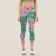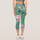 Elegant Mint Leopard Print and Floral Design Capri Leggings