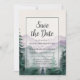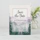 Announce your wedding date in style with this elegant, nature-inspired Save the Date. The beautiful watercolor design features a misty mountain landscape and a lush green forest. The modern calligraphy adds a touch of sophistication. Customize with your names and wedding date for a personalized announcement.