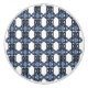 An elegant custom pattern of blue abstract scarabs, linked in a series of linear streamers.