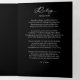 This elegant memorial program features a sophisticated black background with elegant white cursive and serif fonts, creating a timeless and respectful tribute to your loved one. The front cover displays a heartfelt "In Loving Memory" message alongside a beautiful photo of the departed, framed by tasteful typography that highlights their name, dates of life, and a touching remembrance quote or other text. Inside, the layout is thoughtfully organized with sections for the order of service, obituary, acknowledgments, and a meaningful reading or prayer, providing space to honour cherished memories, life achievements, and personal tributes. The inclusion of a photo collage adds a personal touch, showcasing precious moments that celebrate the individual's life. This customizable program offers a dignified and loving way to commemorate and share the story of someone dearly missed.
