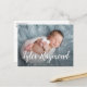 an adorable photo design with blue script lettering. You can upload your own baby's image and edit the text and colours.