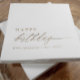 Celebrate in elevated style with these gold personalized birthday party napkins featuring an elegant “happy birthday” script design. The modern minimalist layout pairs graceful script lettering with clean typography for a look that feels both simple and stylish.