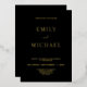 Modern minimalist black and gold foil wedding invitation. Personalize all text and colours in this simple and modern wedding invitation.