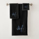 Elegant Modern Black Blue Script Monogram Bath Towel Set