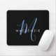 Elegant Modern Black Blue Script Monogram Mouse Pad