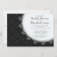 Our pretty & Stylish dark grey grey & black damask bridal shower invitations feature a classy classic damask pattern with a vintage delicate scroll white frame. Perfect modern bridal shower nvitation for your spring bridal shower, summer bridal shower, winter bridal shower or fall bridal shower. Our vintage damask bridal shower invitation is available in our shop in a large selection of colours. Visit our shop for matching floral wedding shower postage stamps, stickers & thank you notes.