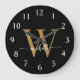 Elegant Modern Black Gold Monogram Name Script Large Clock