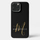 Elegant Modern Black Gold Script Monogram Slim iPhone 13 Pro Max Case. An elegant gold script monogram combined with a clean white san-serif font makes for a contemporary look.
