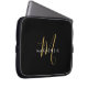 Elegant Modern Black Gold Script Monogram Laptop Sleeve
