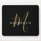 Elegant Modern Black Gold Script Monogram Mouse Pad