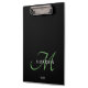 Elegant Modern Black Green Script Monogram Clipboard