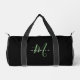 Elegant Modern Black Green Script Monogram Duffle Bag