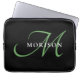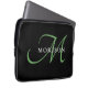 Elegant Modern Black Green Script Monogram Laptop Sleeve