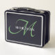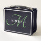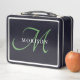 Elegant Modern Black Green Script Monogram Metal Lunch Box