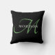 Elegant Modern Black Green Script Monogram Throw Pillow
