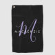 Elegant Modern Black Lavender Script Monogram Golf Towel