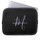 Elegant Modern Black Lavender Script Monogram Laptop Sleeve