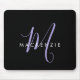 Elegant Modern Black Lavender Script Monogram Mouse Pad