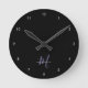 Elegant Modern Black Lavender Script Monogram Round Clock
