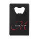 Elegant Modern Black Red Script Monogram Credit Card Bottle Opener