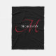 Elegant Modern Black Red Script Monogram Fleece Blanket