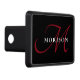 Elegant Modern Black Red Script Monogram Trailer Hitch Cover