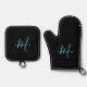 Elegant Modern Black Sky Blue Script Monogram Oven Mitt & Pot Holder Set
