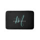 Elegant Modern Black Teal Script Monogram Bath Mat
