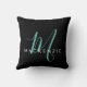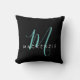 Elegant Modern Black Teal Script Monogram Throw Pillow
