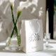 An elegant black and white wedding gift bag designed in a timeless fine-art style.