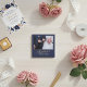 A favour wedding magnet with a wedding photo, bride and groom names and wedding date. Personalize with your wedding photo and other details. The text is in a script and the background is dark navy blue. An elegant and stylish thank you magnet - great as a gift for your wedding guests.