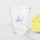 Elegant Modern Blue Script Monogram Shot Glass. An elegant blue script monogram combined with a clean black san-serif font makes for a contemporary look.