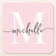 Elegant Modern Blush Pink Monogram Name Script Square Paper Coaster
