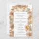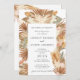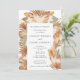 All the text is editable, use the template for any design or invitation. Features dried leaves, foliage in boho colours, and other elements. Colours are muted, greens, soft pinks, and browns. Pampas leaves, palm grass, and more.