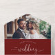 Elegant Modern Burgundy Red Script 2 Photo Wedding All In One Invitation