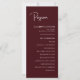 Elegant & Modern Burgundy Wedding Program is designed to guide your guests through your ceremony while adding a refined and meaningful touch to your wedding day. The deep burgundy color brings a sense of romance, tradition, and sophistication, beautifully setting the tone for a memorable celebration. Its clean, modern layout presents ceremony details, names, and order of events in a clear and elegant way, ensuring guests can follow along effortlessly. Thoughtfully chosen typography and balanced spacing give the program a timeless look that complements classic, formal, and contemporary wedding themes. Perfect for couples who value both beauty and clarity, this wedding program turns essential information into a polished keepsake your guests will appreciate and remember.