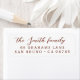 Elevate your mail with this minimal, modern return address label. The family name is printed in elegant calligraphy, with the address neatly positioned below in capital letters. Perfect for adding a clean, minimalist touch to your mail, this label is both practical and stylish, making it ideal for any occasion. View the collection linked on this page for matching items, or visit our store for more return address labels.