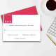 Introducing our chic and modern wedding response card featuring elegant white calligraphy on a rich magenta background. This design is perfect for the couple seeking a stylish and contemporary look for their special day. The crisp white calligraphy stands out beautifully against the bold magenta backdrop, creating a sophisticated and eye-catching RSVP card. The high-quality cardstock and your choice of size and paper type ensure a luxurious and personalized touch. Whether you're looking for a minimalist design or a pop of color, this wedding RSVP card will leave a lasting impression on your guests. Make your wedding celebration unforgettable with this stylish and contemporary RSVP card.
