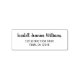 Elegant return address label self-inking rubber stamp with a modern print handwriting script with for the personalized name and a simple, minimalist sans-serif all caps font for the address.
