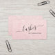 Pretty business card design featuring faux rose gold glitter texture and elegant calligraphy font.