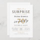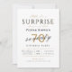 Modern classy surprise birthday invitation features stylish script and typography with your party details in sophisticated gold, black and white, simple and elegant, Great for 70th birthday party or any other age,