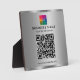 Upload Your Business Company Logo Here Custom QR Code Add Text Modern Elegant Custom Template 5.25 x 5.25 Square Glamourous Faux Silver Tabletop Plaque with Easel.