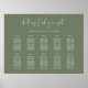 Horizontal wedding seating chart. The chart in the example has 10 tables and 100 names, but you can easily edit it to suit your needs with the design tool. A modern typography and a trendy sage green colour palette for your wedding stationery: choose this simple and elegant wedding suite. Fully customizable: you can change the background as well as the text colour as you like.