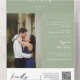 This all-in-one invitation features a clean and simple block serif typography font and calligraphy on a dusty green background. The simplicity of this design adds a touch of elegance to your wedding and works well with all wedding themes and definitely a great addition to your wedding. Just customize the names and wording in a few easy steps and personalize the all-in-one invitation card with your photo of the happy couple and type in the QR Code to give your invitation a nice personal touch. This invitation will save you money to send everything at once. It has a perforated RSVP postcard can be easy to tear off and your guest just sends it to you. Just simply fold each card into the outlined shape -- seal and send to your guests. No envelope is needed for shipping -- just postage.