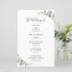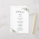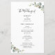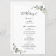 watercolor eucalyptus foliage and black text. You can personalize the text and colours on this wedding program template.